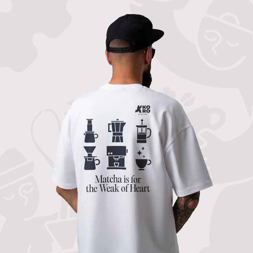 Keywords/Tags coffee t-shirts, oversized t-shirts, unisex t-shirts, combed 24s t-shirts, screen printed t-shirts, barista t-shirts, coffee t-shirts, just coffee, matcha, KORO Roasters, coffee clothes